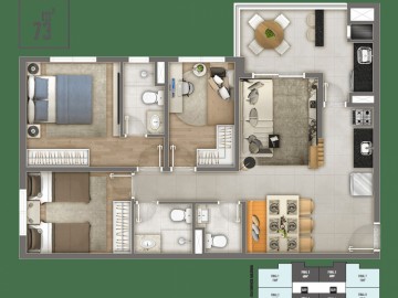 - 73 2m2 3 dormitórios / sendo 1 suite , lavavo e varanda integrada com a sala 1 vaga á partir de R$ 586.817,34