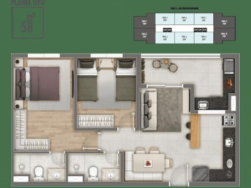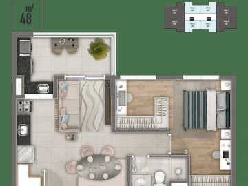 - 48m2 com 2 dormitórios , terraço 1 vaga á partir de R$370.000