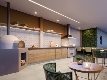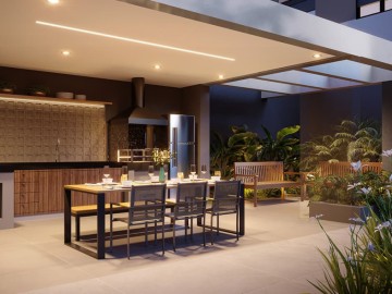 Apartamento em construção de 59 m2 a 79 m2, Varanda gourmet com churrasqueira