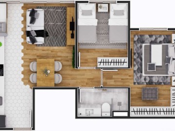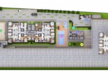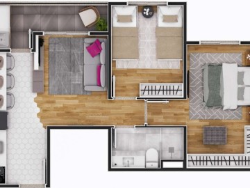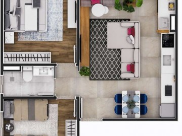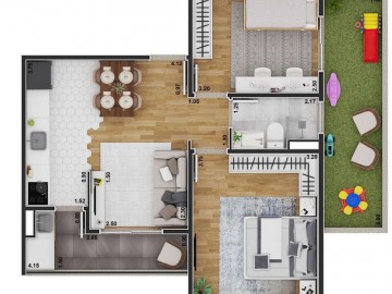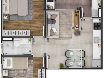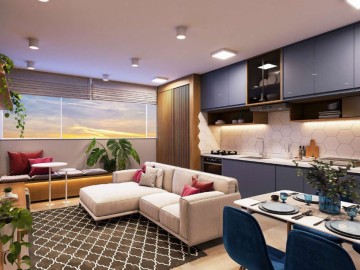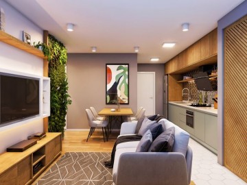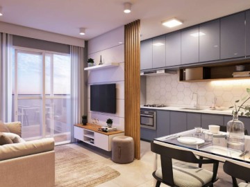 Apartamento de 52,39 m2 com 2 dormitórios sala integrada com a cozinha e terraço grill,1 banheiro, cozinha e area de serviço , 1 vaga