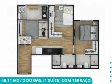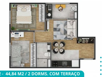 42,42M2/ 2 Dormitórios + Terraço Grill