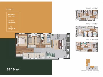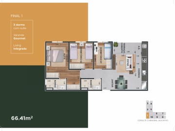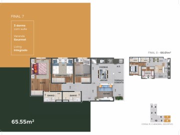 - 3 dormitórios 66 m2 com suíte 1 ou 2 vagas