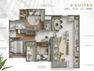 Apartamentos de 84m² e 67 m² 2 e 3 Suítes com ventilação natural, terraço gourmet com churasqueira a carvão + Lavabo, 1 e 2 Vagas de Garagem, apartamentos com infraestrutura preparada para ar condicionado