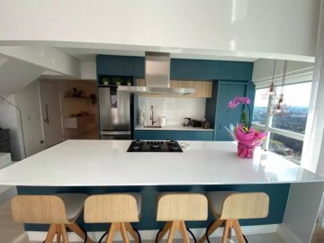 Apartamento 123 m² duplex com pé direito duplo, 2 Quartos, 2 Suítes , 2 Vagas, andar alto com vista livre, planejados em todos os ambientes. Porteira fechada .