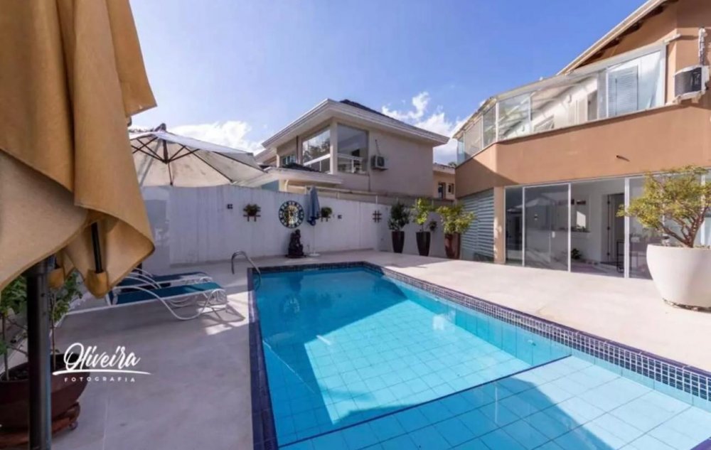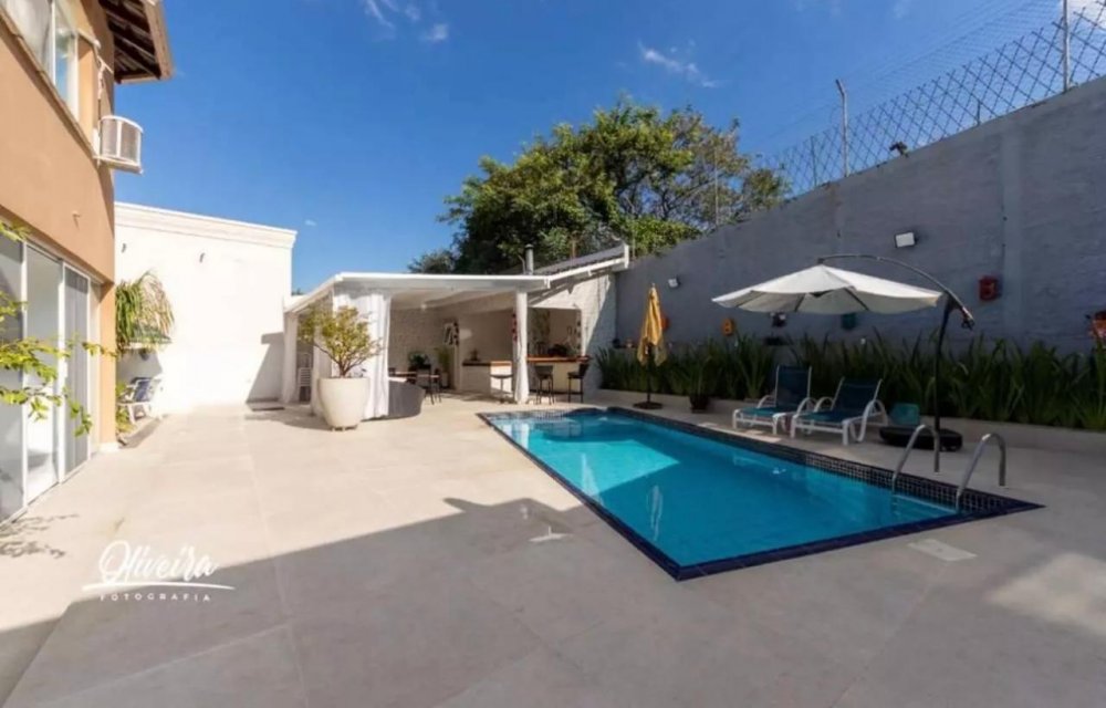 Área de lazer com piscina, e área gourmet bem equipada e ampla . A casa ainda conta com duas dependências de empregados, com entrada independente pela garagem.