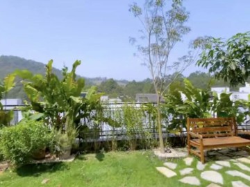 Paisagismo da Terra Fofa nos fundos, e árvores frutíferas na frente