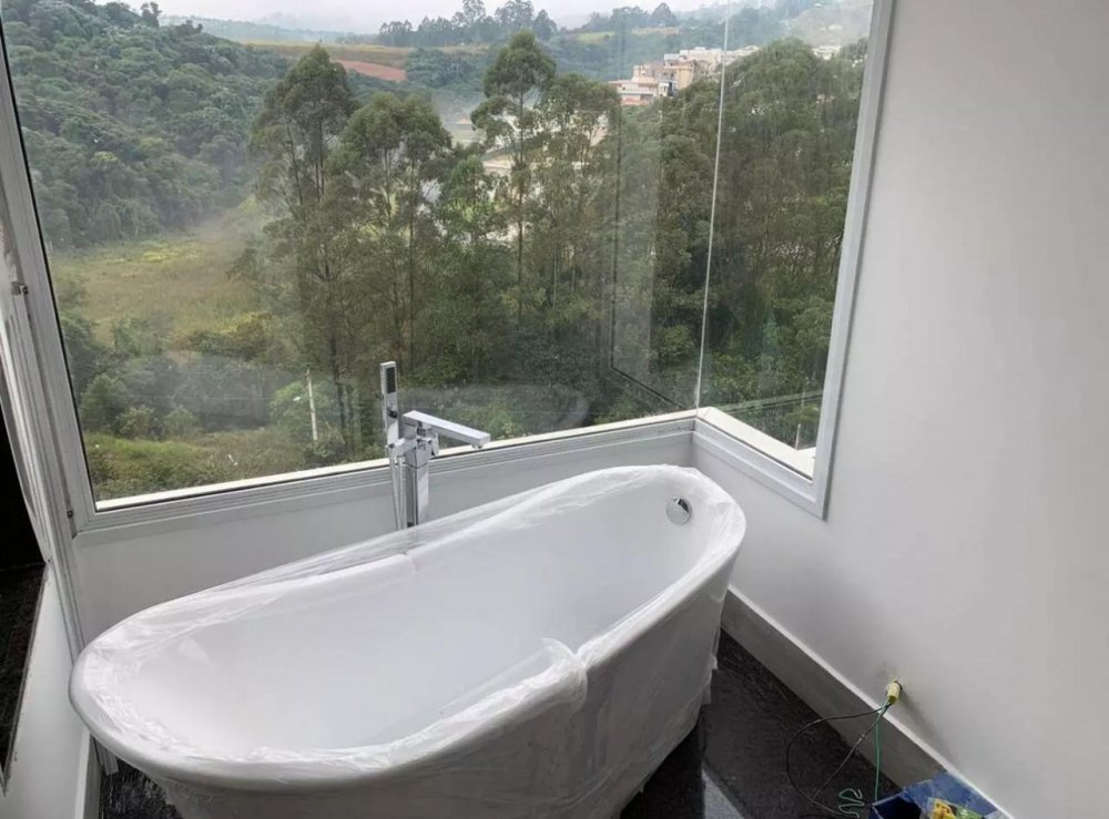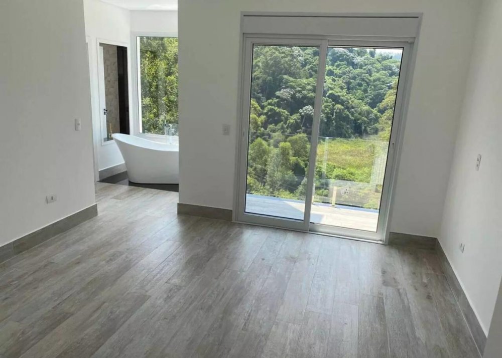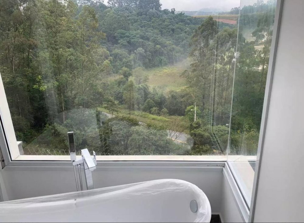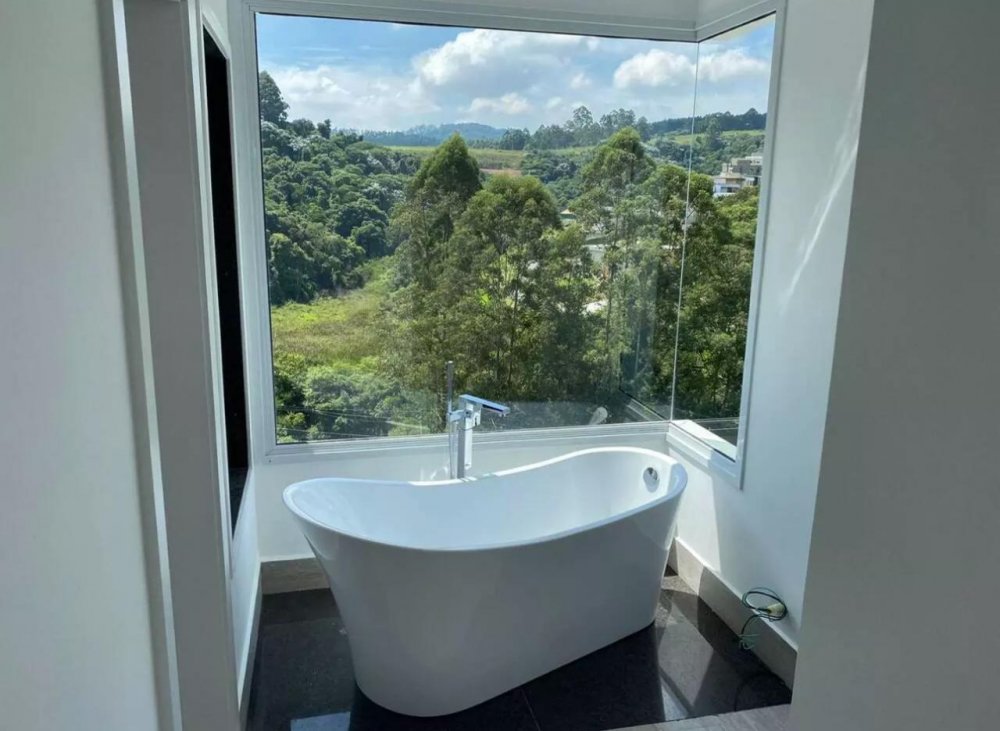 Uma suíte master com closet e banheira imersiva, com a maravilhosa vista a natureza ,Living com 3 ambientes, sala de tv, lareira, jantar