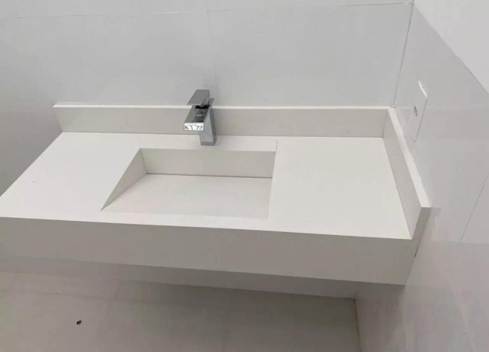 A casa está na fase do acabamento, sendo utilizados materiais de de fino acabamento.