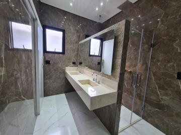 Imóvel novo entregue com suítes com persiana integrada por controle remoto, louças e metais, aquecimento solar, cisterna, infraestrutura de ar condicionado, encanamento para aquecimento solar da piscina, escada em mármore iluminada, pé direito duplo, entrada social ampla com fechadura digital na porta e muitos outros detalhes.