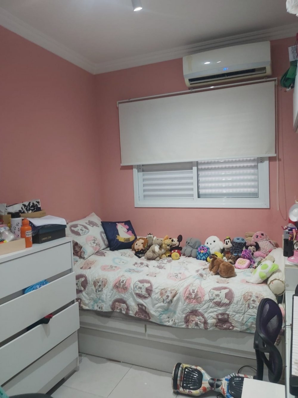 Possui 3 quartos (sendo 1 suíte), todos com armários embutidos e ar-condicionado em dois deles.