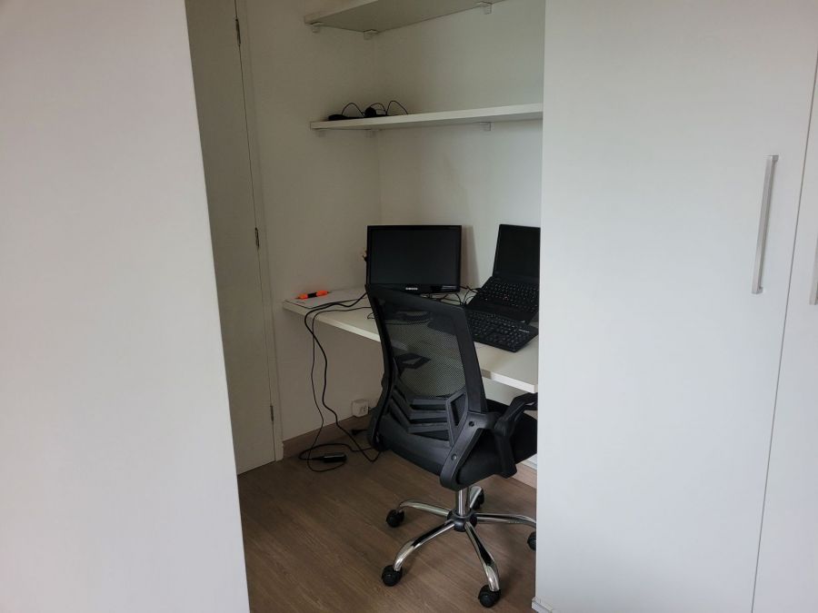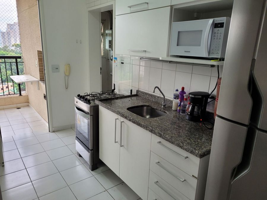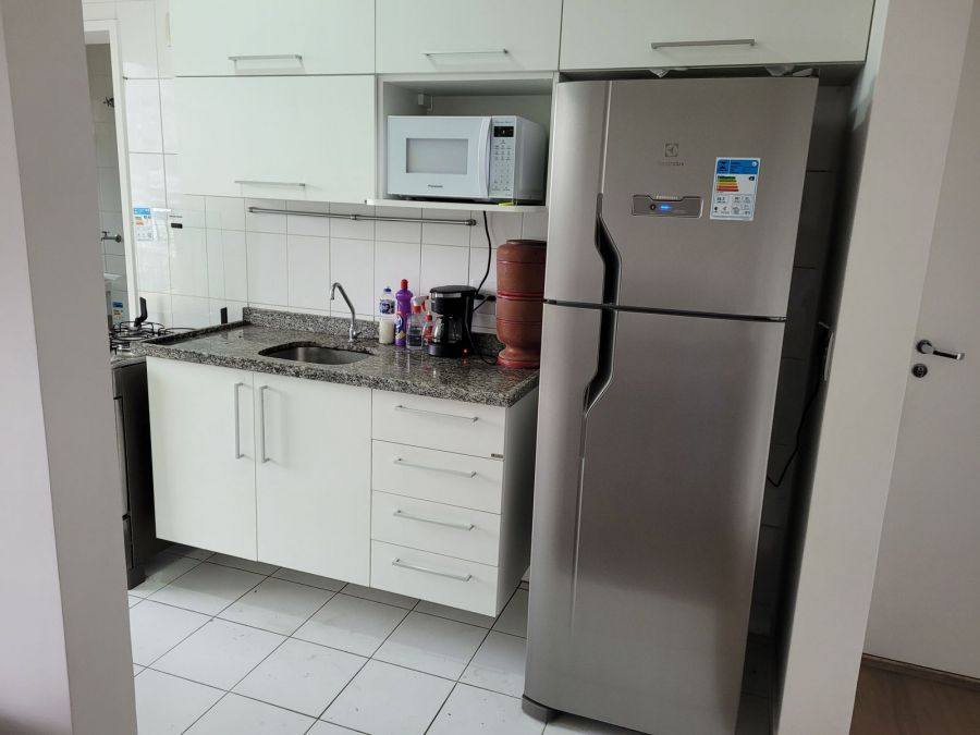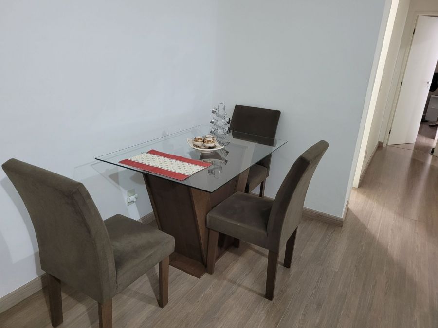 Apartamento 2 quartos sendo 1 suíte, armários planejados (quartos, cozinha e banheiros) Varanda gourmet com churrasqueira a carvão. Pode ser mobiliado ou não (mobília simples)Compõe o imóvel: armários planejados nos quartos, banheiros e cozinha, além de geladeira, máquina de lavar, sofá, mesa e microondas.