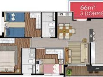 Apartamento de 66 com 3 dormitórios sendo 1suíte e terraço
