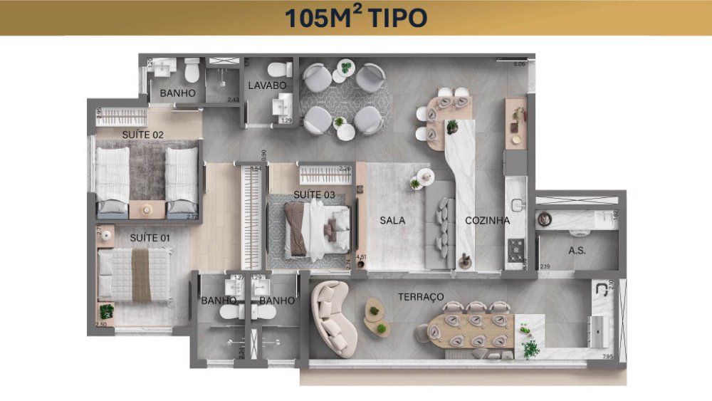 Apartamentos 3 e 2 Dorms. 57 , 74, 80 e 86m² 103m2