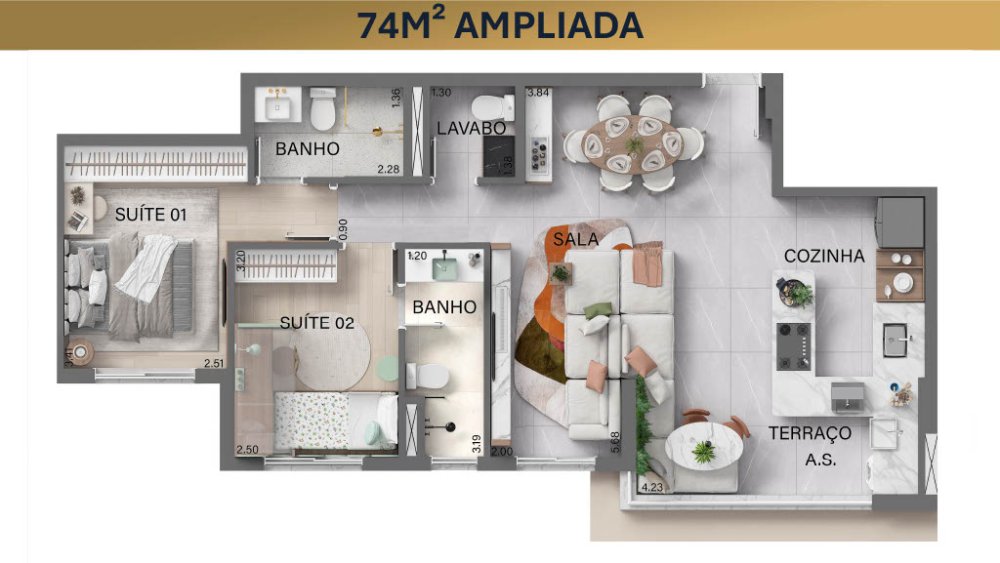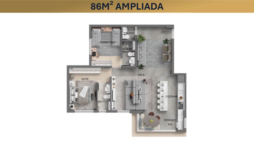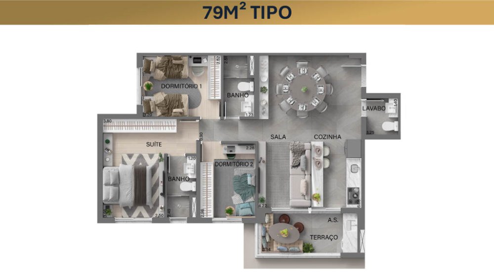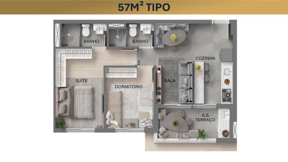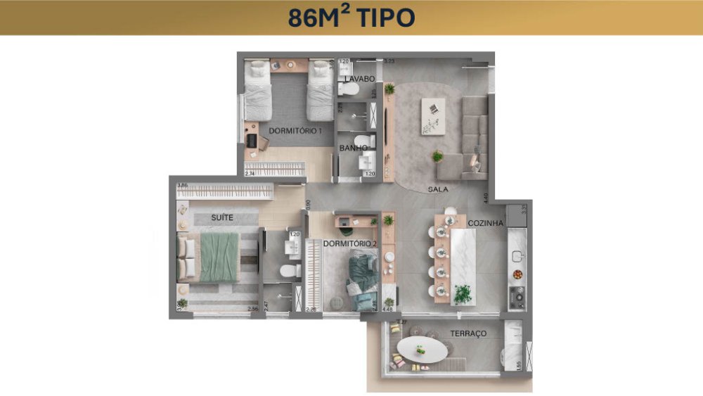 Apartamentos 3 E 2 Dorms. 57 , 74, 80 e 86m²