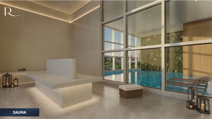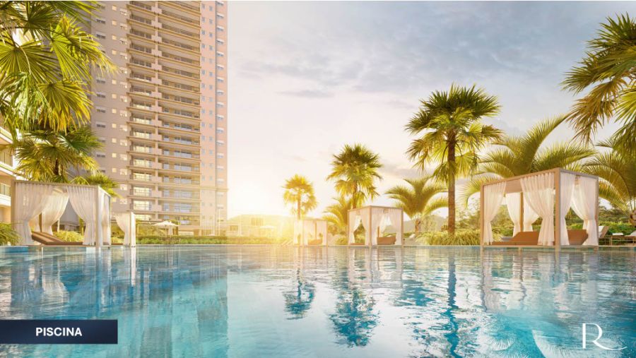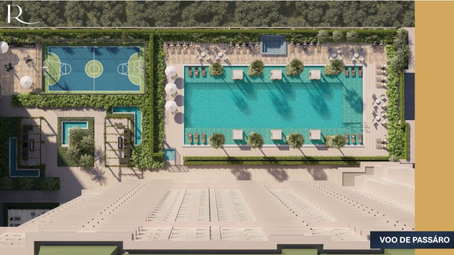 Piscina adulto com raia semi-olímpica, ofurô, piscina infantil com brinquedão, piscina para convidados, piscina VIP, piscina aquecida, sauna e piscina para pet.