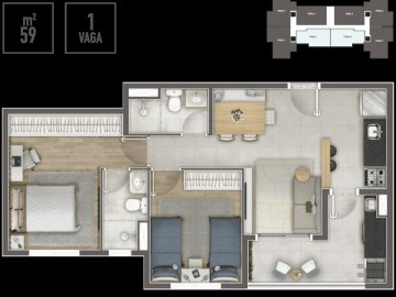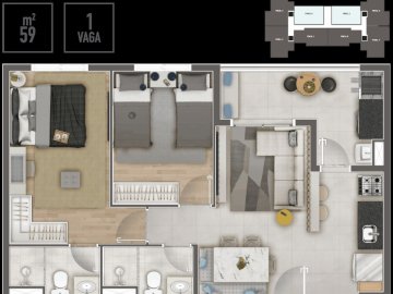 - Área Total: 59 m²