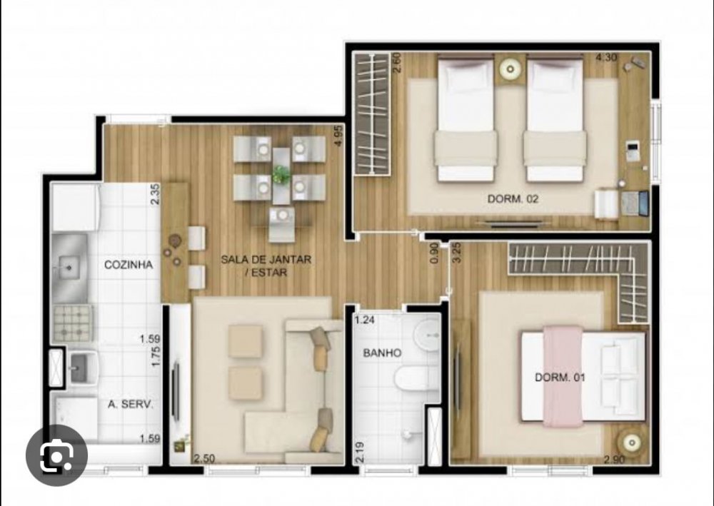 Apartamento 51m2 2 dormitório cozinha , sala de star e jantar 1 banheiro 1 vaga.