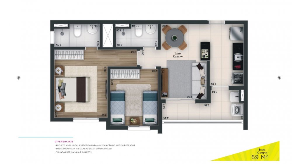 Apartamento de 59m2 Sendo 1 Suíte e Terraço